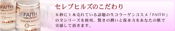 6秒に1本売れている話題の生コラーゲンコスメ「FAITH」の全シリーズを使用。驚きの潤いと保水力をあなたの肌で実感して頂きます。
